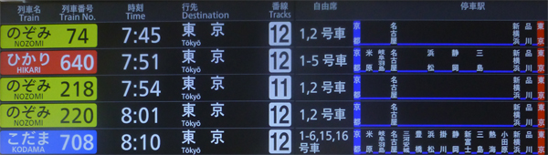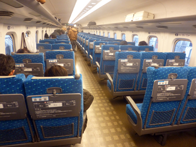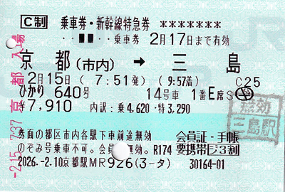 上 伊豆の旅に出発。7時51分、京都発、「ひかり640」に乗車。名古屋まで各駅停車で、浜松、静岡、三島と停まる。 左 荷物置場のついた最後尾座席を予約しておいた。 |