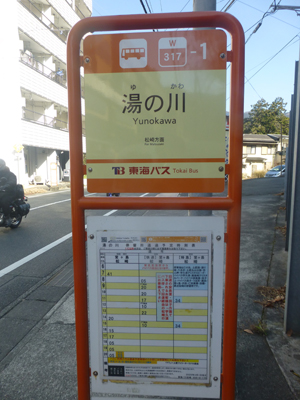 土肥温泉で1泊するのだが、泊まる宿は「湯の川」バス停が最寄りなので、定刻だと11時31分、実際は11時40分ごろ、ここで下車。2、3分歩き、宿に荷物を預けに行き、身軽になって土肥温泉の観光スタート。 |