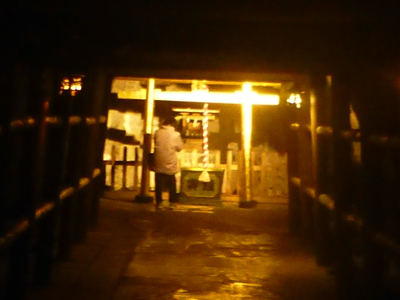 中に入るとすぐ「まぶ湯」があり。湿気でムッとする。ぬるいが湯であった。入浴は不可。 |