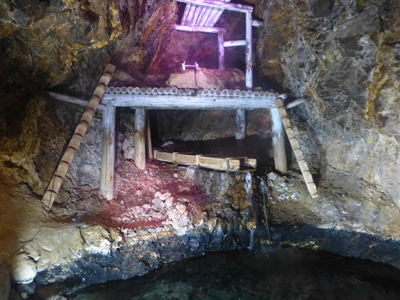 採掘現場。今も金脈が残っているところが示されていた。 |
