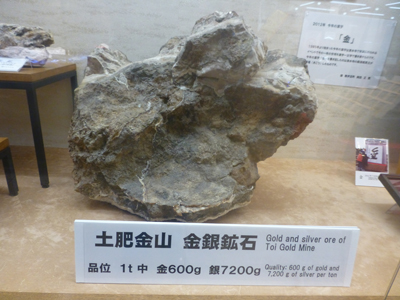 展示施設で金銀鉱石などを見た。 |