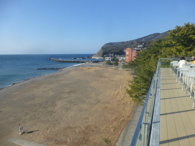 最上部から土肥海岸を見る。 |