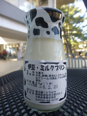 ミルクプリンを食べて休憩。製造は伊豆市土肥の五鈴産業。 |