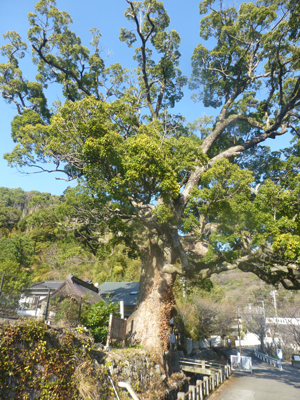 土肥温泉の発祥地である安楽寺へ。寺の前に大クスがあった。安楽寺は、戦国末期の天文年間の創建で、それ以前にこのクスがあった、県の天然記念物。 |