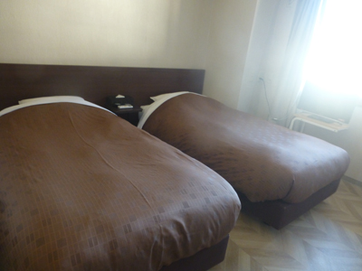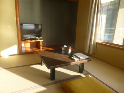 和洋室を選んだ。今まで泊まったところでは、和室と洋室が続いていたが、ここでは離れている。写真は洋室。下左 洋室から少し見える和室。 下右 和室。 |