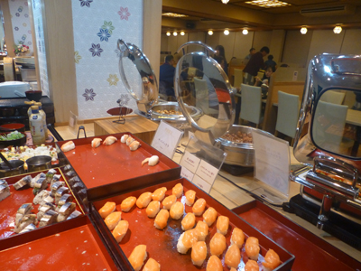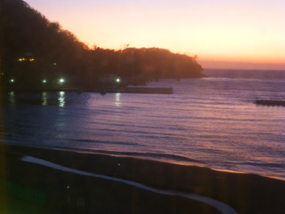 この日は「大江戸温泉物語 土肥マリンホテル」で泊まる。"大江戸温泉物語"は、経営不振や破綻した宿を買収して、格安で営業しているグループ。 今まで、この種の合理化を徹底して格安料金、食事バイキング方式で再生させた宿は、ほとんど泊まったことがなかった。今回の旅では、ここ以外に、熱川の"BBHホテル"、熱海の"伊東園ホテル"という、同じような再生宿中心のグループ宿に泊まった。 |