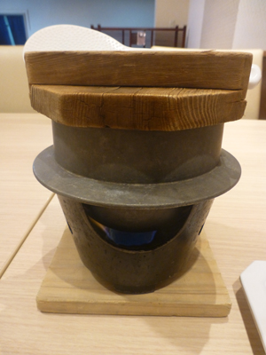 バイキング。格安の温泉宿なので、味は値段相応。温泉宿は、多少値段が高くても、極力、夕食が膳か会席の宿を選ぶが、今回は格安バイキング宿しかとれなかったので、食事はやや不満足。 下左 釜めし。 下右 炊きあがったところ。 |