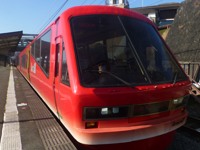 朝食後、チェックアウトし、駅へ。スーツケースを転がしながら坂道を上るのはなかなか大変。この日は伊東を観光し、熱海に移動し泊まる。 熱川、8時56分発、伊豆高原行きに乗車。 |