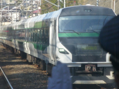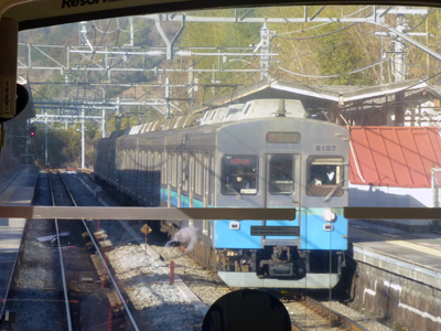 最前席が空いていたので座る。特急・踊り子の通過待ち。 |
