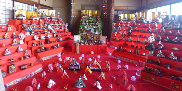 5階に相当するところに展望室がある。中は特に何もなかった。下 ひなまつりの特別展示。 |