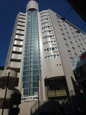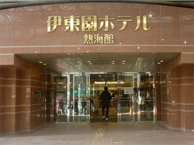 アーケードを抜けるところに1泊する「伊東園ホテル熱海館」がある。 |