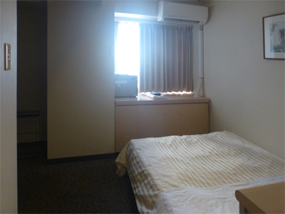 入浴のあと館内の見学。客室の1つ。部屋は数室公開されていたが、どこもこんな感じで、だんだん飽きてきた。 |