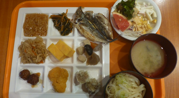 朝食会場へ。下 選んだ品。 |