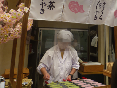 さくらタイ焼きを焼いている。 |