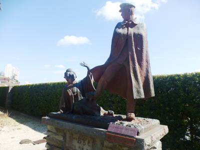 尾崎紅葉の「金色夜叉」にちなむ寛一、お宮の像。 |