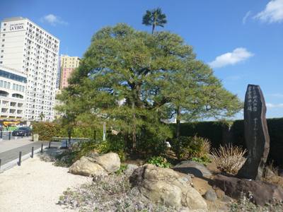 お宮の松。現在のは2代目という。下 ホテルが多く並ぶエリアがここ。 |