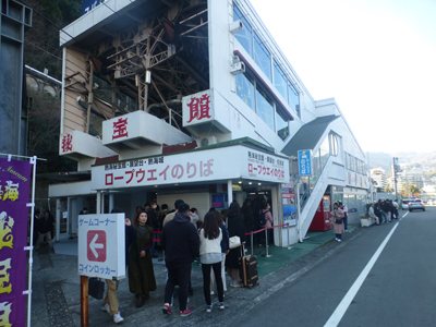 ロープウェイ乗場に到着。今や絶滅危惧種である「秘宝館」が健在なようだ。 |