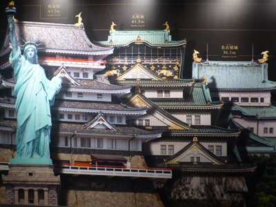 城内の展示。楽しめるものにしていて、資料性のあるものは少ない。歌川国芳の絵の模写がいろいろ展示されていた。男の顔の中にたくさんの人間が描かれていりのこの絵の本物は、1年前に中之島美術館であった歌川国芳展で見たのでよく覚えていた。 18禁のフロアがあり、江戸時代の春画の展示だったが、秘宝館とほぼ同じ内容で手抜き感があった。 |