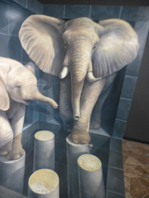 平面に描かれた絵を立体的に見せるものが多い。以前、北海道・上富良野で見た館と同じような感じ。 |