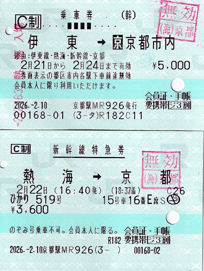 乗車券は伊東から、特急券は熱海からで旅行前に購入。 |