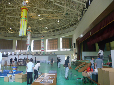 全国こけし祭りの会場をのぞいてみた。まだ、準備が始まったばかりという感じだった。 |