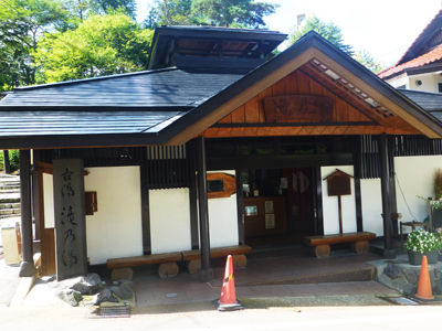 (鳴子温泉郷観光協会のHPより拝借)「滝の湯」という浴場名の通り、打たせ湯があった。 湯は白濁していて、底が見えないので、入るのが少し恐かった。 とても熱くて、44度くらいあり、長くは入っていられない。 |