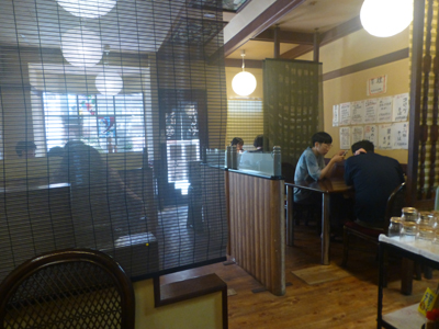 店内。1階はカウンターだけだが、2階にテーブル席があるようだ。 |